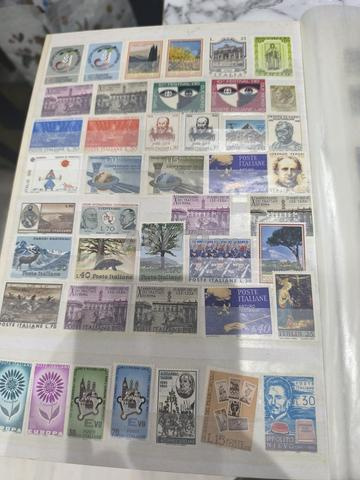 Livre de timbres-poste rempli de timbres français et italiens