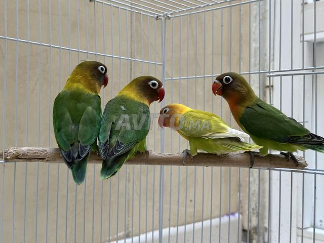6 عصافير فيشر جميلة مع قفص و لوازم 🦜