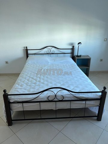 - Lit double avec matelas, table de chevet et lampe
