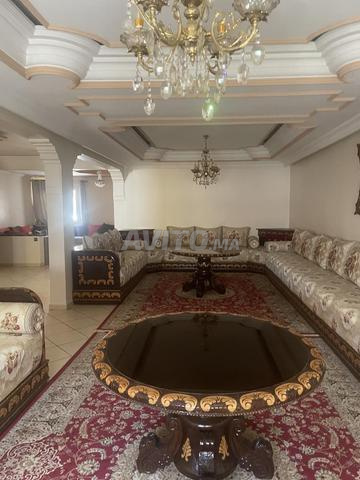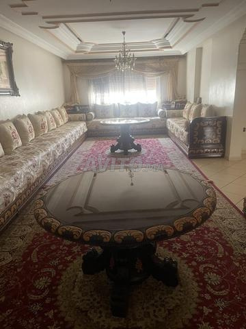 Bonjour je vends un salon marocain en bonne état presque neuf 4/10 avec 2 tables rondes et 6 petits tables de coin un rideau de 4 mètres de large et 2 lustres en cuivre.