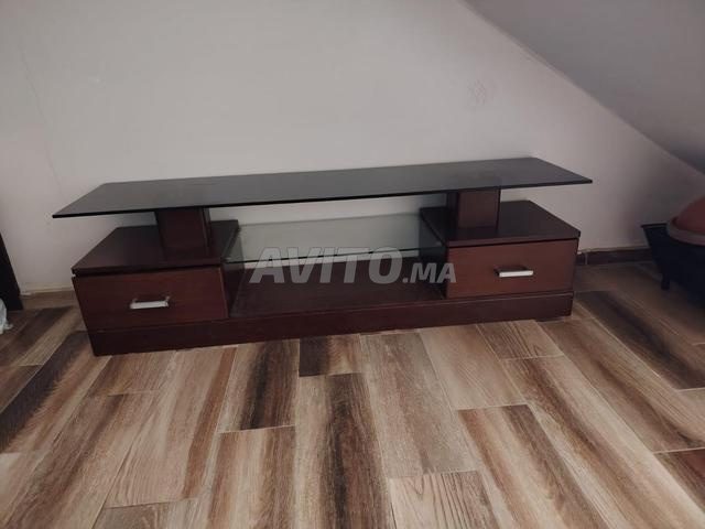 En vente meuble TV en bois très bon état, très peu utilisé, avec les tiroirs et plateforme en verre. Excellent état, très propre.