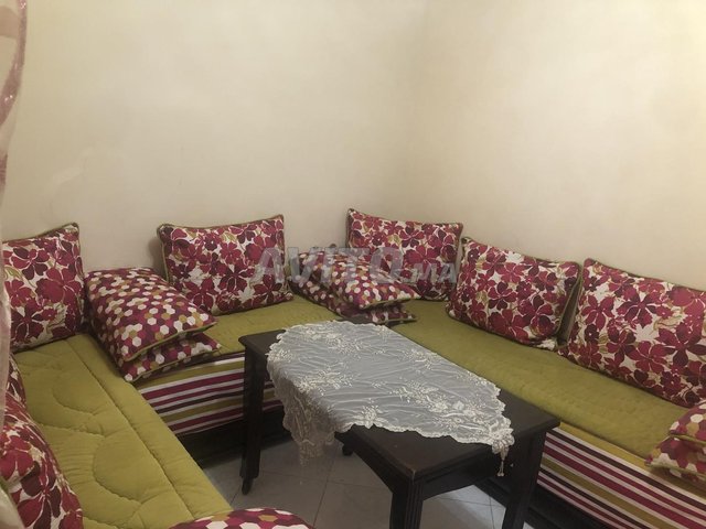 Salon complet à vendre en tres bon etat inclus tapis table en bois et les draps