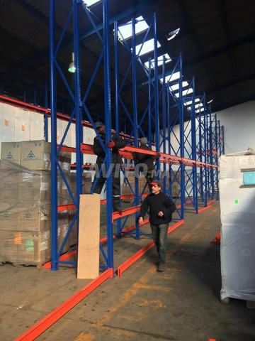 Configuration : Généralement composé de travées, pouvant être modulaires et ajustables en hauteur pour s’adapter à divers types de marchandises.