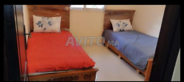 appartement a louer equipé proche d toutes commodités et à quelques minutes de la plage achkkar et sidi kassem propre calme et equipé des cameras. deux chambres salon cuisine equipee . avec un prix tres abordable sans intermediaire.