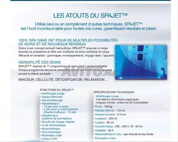 Spa jet , traitement par rayonnement infra rouge, Sauna, vapeur hamam, hydrotherapie, oligotherapie, douche de rinçage, lit de vibromassage, musicotherapie, chromotherapie, multimédia vidéo, lecteur dvd, aération visage