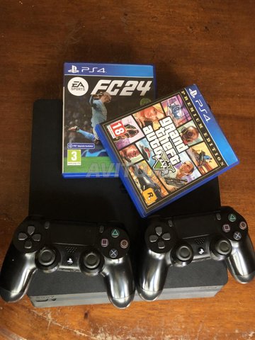 - PS4 slim , 2 manettes, gta v, Fc 24