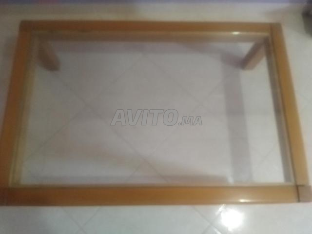 Salam, il y a une table en bois avec du verre