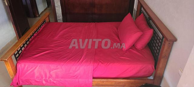 - Lit deux places en bois avec sommier