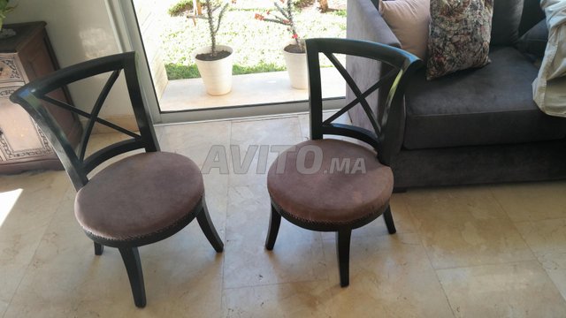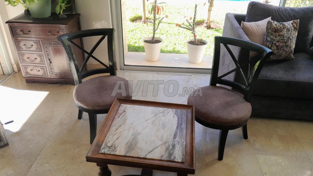 Je mets en vente 2 Chaises maron 600dh et une jolie Table antiquité marbre et bois 400dh