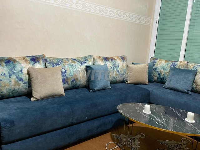 Salon en tres bon etat composé de deux canapés (1.80*70 cms chacun) avec une petite table et canapé d'angle.