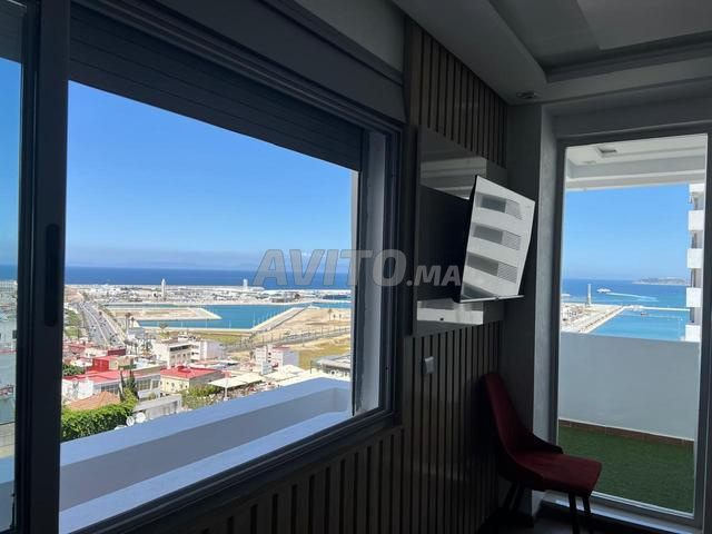 Charmant appartement neuf idéalement situé Au Cœur de Tanger. Se compose de 2 chambres à coucher dont une suite parentale, un salon donnant sur une belle terrasse avec une vue splendide sur mer, une cuisine américaine entièrement équipée, 2 salles de bains avec douche italienne. Il vous séduira par sa belle vue et ses bonnes prestations (parquet, piscine, climatisation centralisée, télévision dans la chambre principale et dans le salon, place de Parking souterrain avec accès direct à l'appartement).