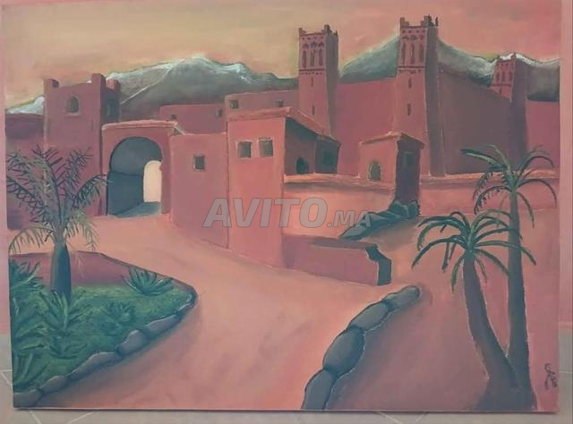 Je met en vente ce tableau représentant l'architecture traditionnelle marocaine. Inspirée du monument Kasbah Ait Ben Haddou à ouarzazate . Cette peinture reflète l'entrée d'un village au coucher du soleil.