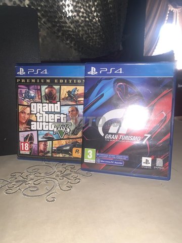 PS4 Slim avec une manette et le jeu GTA V et Grand tourismo et tout les câbles sont fournis avec