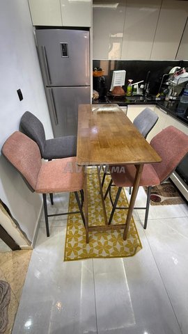 - Table en bois avec 4 chaises tabouret