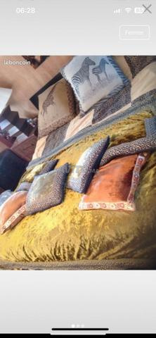 Très beau couvre lit (2) avec 2 très gros coussins et 6 petits de très belle qualités acheté en magasin de lux à Paris ,