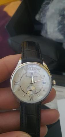 Fonctionnalités : Elle dispose d'un mouvement à quartz, d'un guichet de date à 3 heures et d'un cadran auxiliaire pour les petites secondes au-dessus de 6 heures.