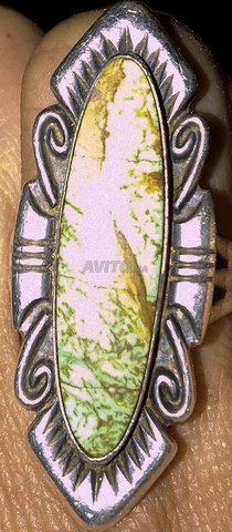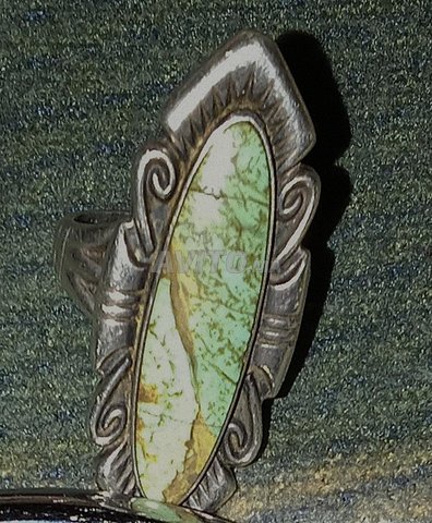Bague longue turquoise amérindienne de usa navajo en argent sterling par silvercity 925 avec une pierre gaspeite