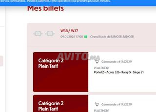 2 TICKETS MATCH 9 JANVIER TANGER quart finale