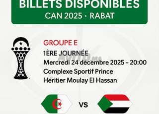 Billets Algérie VS Soudan CAN 2025 Rabat