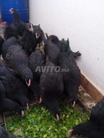Poulets Australorp purs, âgés de 2 mois et demi, prix 70 dirhams complet. Les mâles pèsent 1 kg. Si quelqu'un est intéressé, bienvenue.