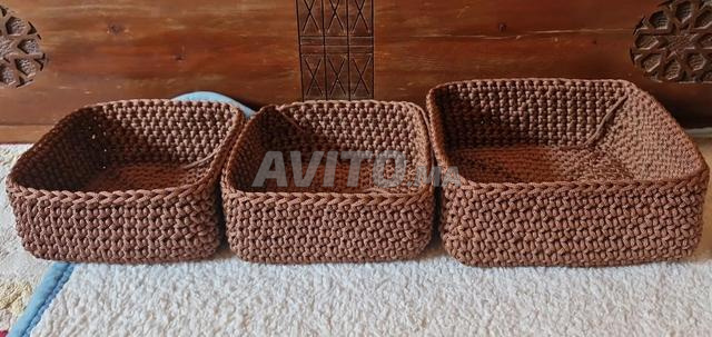 سيت من 3 صناديق كروشي يدوية مصنوعة بعناية من خيط ماكرامي تريكو عالي الجودة الأحجام صغير - متوسط - كبير متناسقين وكيقدمو منظر أنيق