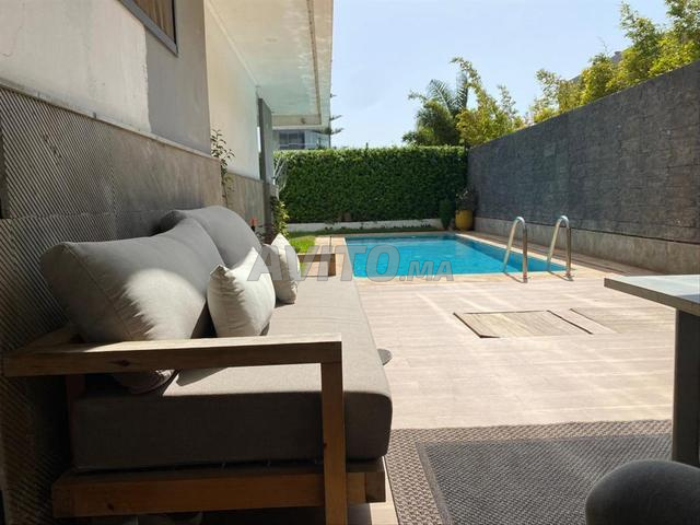 très bel appartement au Rdj avec entrée privatif dans une résidence fermée et sécurisé. D'une superficie habitable de 100m2 composé de 2 chambre dont suite parentale, un salon, une cuisine, une grande terrasse couverte baie vitrée avec accordéon, une deuxième salle de bain, une deuxième terrasse donnant sur une piscine privative et un jardin de 100m2. Place au garage de 31 m prix 2.5MDH .,