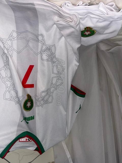 Maillot blanc officiel de l’équipe nationale marocaine CDM 2022 taille 14 ans avec short