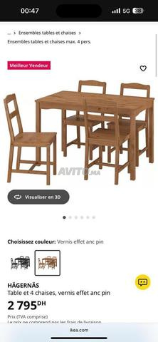 Je mets en vente ma table ikea quasi neuf avec 4 chaise à 1800 dh prix non négociable.