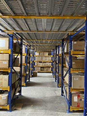 Nous vous proposons une configuration de rayonnage mi-lourd adaptée à vos besoins, disponible en stock pour une livraison immédiate.