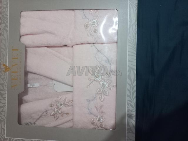 Je mets en vente sortie de bain 3 pièces : grande serviette , peignoir , serviette cheveux