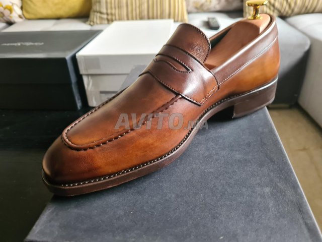 Je mets en vente une paire de penny loafers de luxeMarron Patina, de marque Benson et de taille 41, en tres bon etat. Les chaussures sont cousues GoodYear avec des semelles en cuir. Elles sont vendues dans leur boite d'origine. Possibilité de les vendre avec les embauchoires en bois de cedre de marque Benson a 700dh