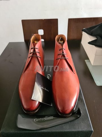 Je mets en vente une paire de chukka boots de luxe Carlos Santos neuve, de couleur Braga patina et de taille 41. Les bottes sont cousues GoodYear et ont des semelles en cuir. Elles sont vendues dans leur boite d'origine avec des les sacs de voyage. Possibilité de vendre avec des embauchoires en bois de cedre de marque Valmour à 1350dh (les bottes valent 385 euros sur le site Carlos Santos)