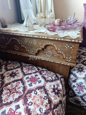Menuiserie traditionnelle l7or. Bois authentique. 4 petites tables et une grande table, 2 coins, 4 l7oufa de 2m10 et 1 de 1m70. Sans matelas.