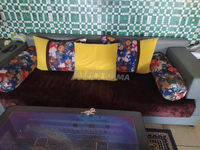 salon propre forme L 2m/2m Avec coin et table tapis