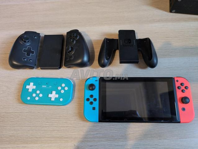 Nintendo Switch original, avec la paire des manettes joycons originales, une paire dey joycons marque tierce, une manette petite de plus, une carte sd 200GB, et tout les accessoires originales.