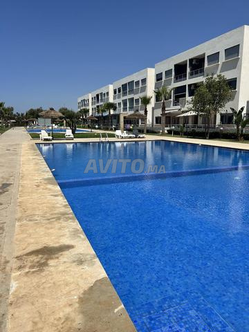 Bel appartement rez-de-chaussée, entièrement meublé, dans une résidence privée sécurisée à Mansouria, proche de la mer.
