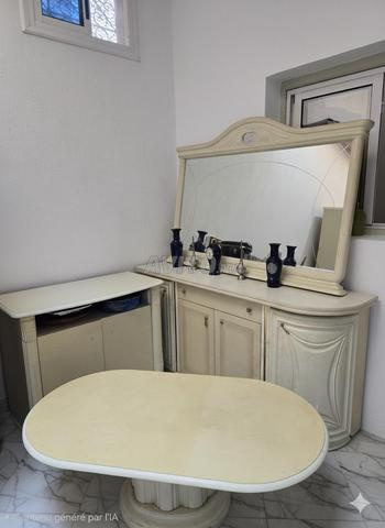 Je mets en vente un dressoire avec grand miroir, table de Tv et table bas de salon. Meuble Turque importé de la Holland.