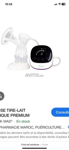Tire lait en parfait état avec toujours sa boîte d origine tous ses accessoires convient à toutes les tailles aucune douleur battrie intégré pour utilisation à l extérieur