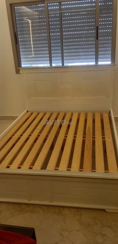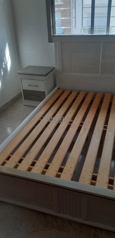Je mets en vente mon lit 2places 1.6*2, trés bonne état, coiffeuse 1.3m*1m*50cm et deux tables de nuit 0.5×0.58×0.4.