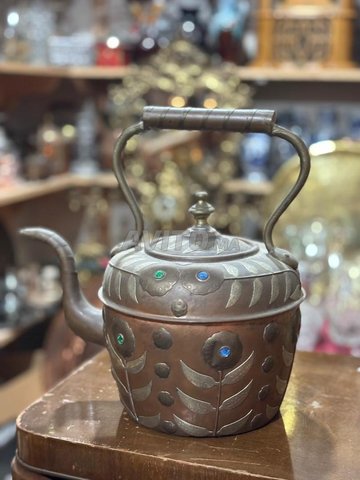 Bouilloire/théière antique en cuivre avec décorations incrustées de pierres colorées