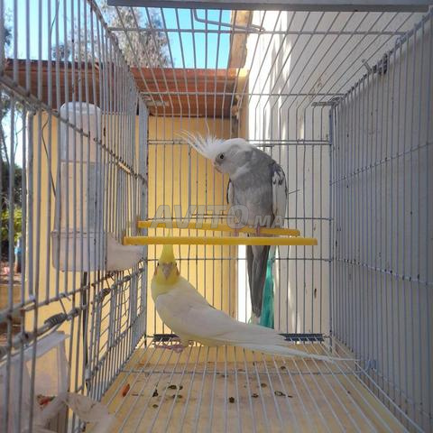 Couple calopssite avec bague et cage et un nids d'accouplement en bois