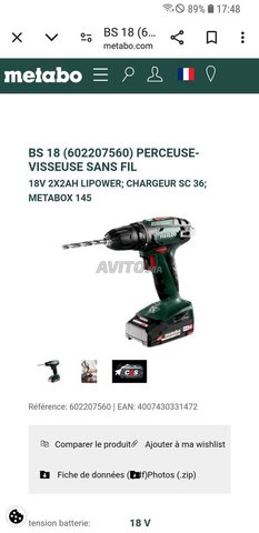 - Perceuse visseuse Metabo 18 v lithium