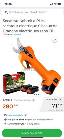 secateur sans fil marque keptek avec accesoire chargeur 3 batterie neuf importe