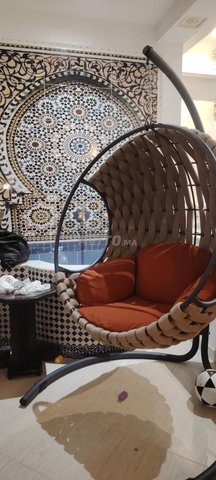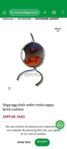 Chaise oeuf vega anthr resine cappu coussin brique tout neuf j'ai acheté de Mr. Bricolage 3500 dh le mois dernier
