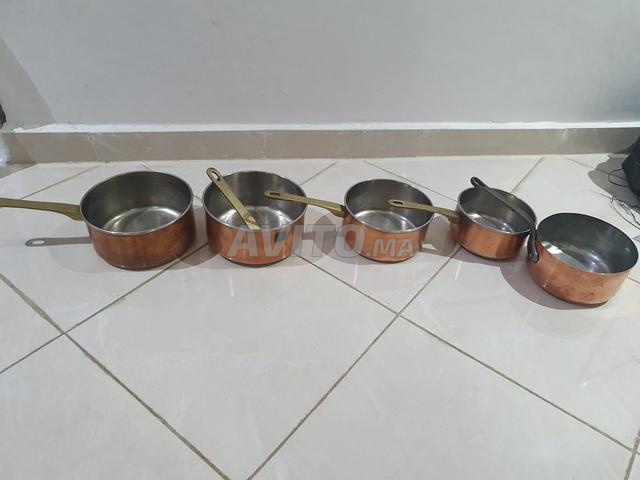 Vend lot de casserole en cuivre en bon état,sauf une qui à un manche à réparer.