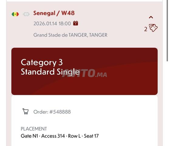 Vend 2 places demi final tanger 1000dh/ticket disponible face face meknes transfert Fan ID