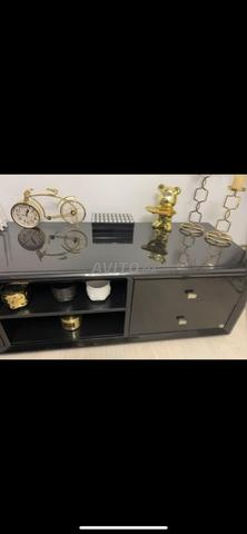Meuble TV noir de très bonne qualité, solide et élégant. Il est en bon état, avec une finition soignée, idéal pour un salon moderne