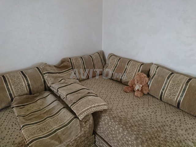 Je mets en vente (02) tlamet en beige pour séjour en L, très bon état de tissu, mesure(2,5m) chacun avec 6 mkhad, 4 msaned.