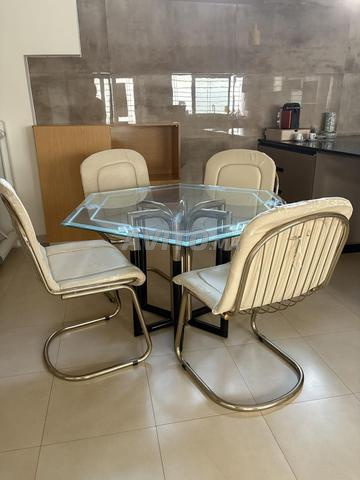 Particulier vend salle à manger moderne en verre et chrome avec ses 6 chaises pour cause de déménagement.