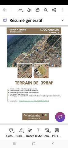 Terrain très bien situé au centre de harhoura